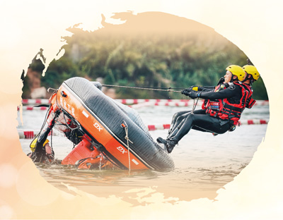 浙江省杭州市消防救援支队消防员开展水上课目演练。陈永杰摄(人民视觉)